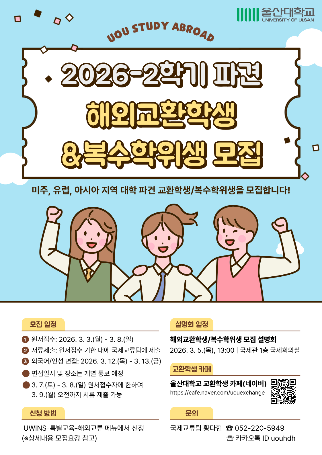| 2026-2학기 파견 해외교환학생 및 복수학위생 모집 홍보 | |||||